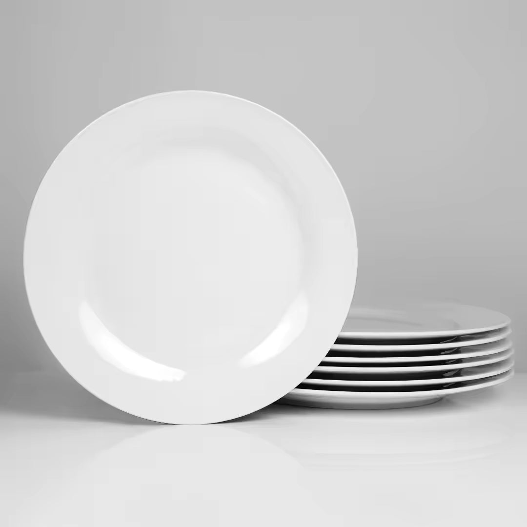 Made from high-quality porcelain, these plates are polished to perfection, giving them a sleek and sophisticated look. The solid white color adds a touch of elegance to any table setting, making them suitable for both casual and formal dining.